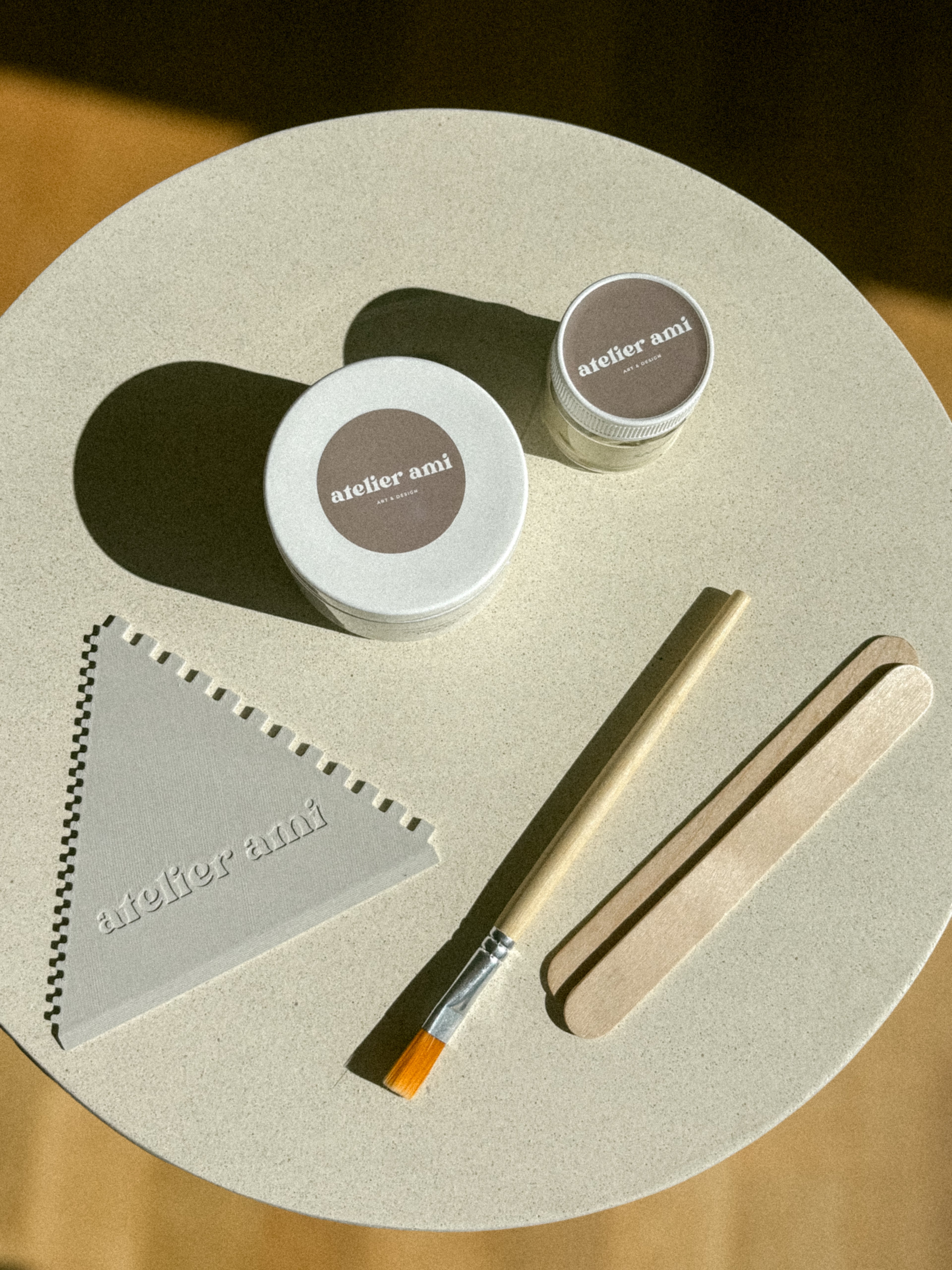 Der Textur-Spachtel ist ein eigenes Design von atelier ami und wird im 3D-Druck hergestellt. Praktisch, nachhaltig und perfekt abgestimmt auf dein Set.